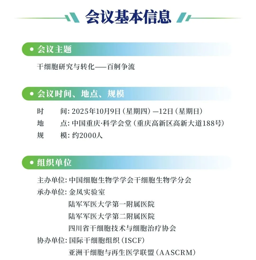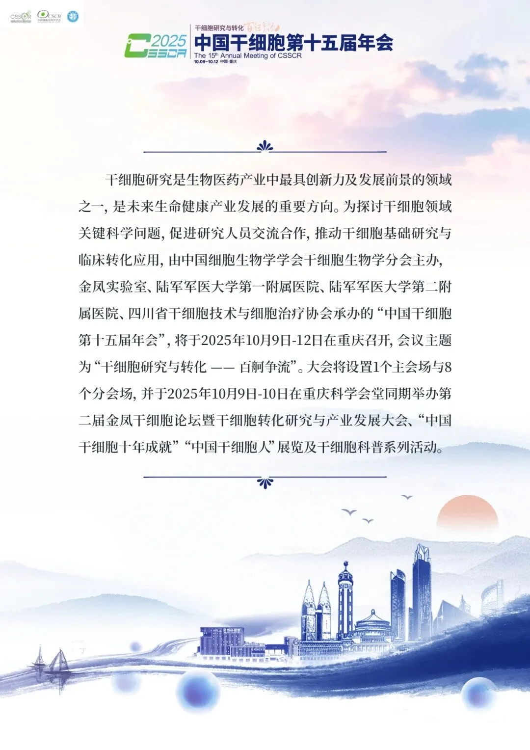 通知公告|中国干细胞第十五届年会会议通知(第四轮)