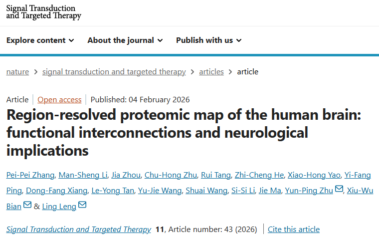 近日,陆军军医大学卞修武院士(金凤实验室主任)团队与北京协和医院冷泠团队、国家蛋白质科学中心(北京)朱云平团队在国际知名期刊《信号转导与靶向治疗》(Signal Transduction and Targeted Therapy,IF=52.7)发表了一项突破性研究:成功构建了全球首张覆盖人脑13个解剖区域的蛋白质组图谱。该研究不仅揭示了大脑各区域特有的蛋白质表达模式,还提出了一个全新的三模块功能框架,为理解大脑高级认知功能、神经系统疾病机制及精准诊疗提供了重要分子基础。