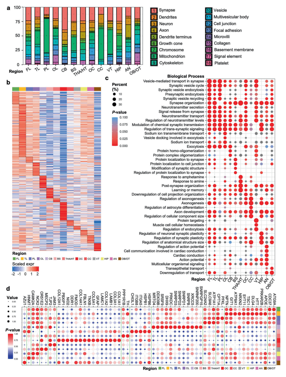▲脑区细胞组分分析及神经元特异性高表达蛋白的功能表征
