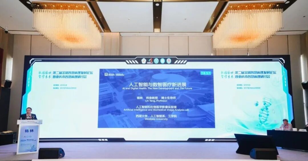 在学术报告环节,多位专家带来精彩报告。中华医学会病理学分会名誉主委、四川大学华西医院步宏教授围绕“数字病理的新任务”进行报告,分析了数字病理在临床应用中面临的机遇与挑战。西湖大学工学院人工智能与生物医学影像实验室主任杨林教授就“人工智能与数智医疗新进展”进行分享,介绍了人工智能技术在医疗领域的最新应用成果。